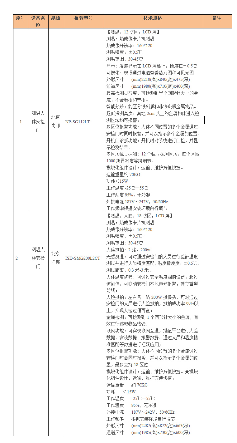 1)測(cè)溫人體安檢門